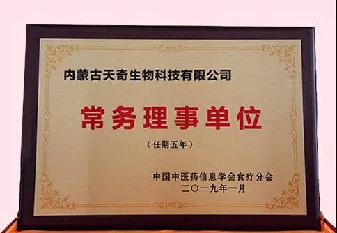 天奇生物榮選為中國中醫藥信息學會食療分會常務理事單位!